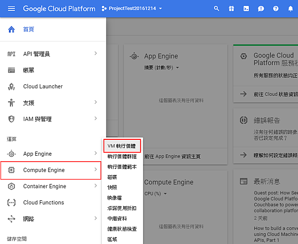 點選左上角的服務選單 > Compute Engine > VM執行個體