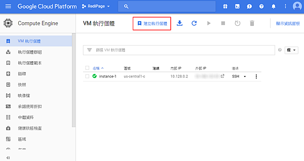 這邊會列出你目前的虛擬機列表,點選上方的「建立執行個體」繼續