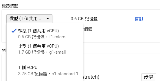 設定區域:此為虛擬機要部屬的地點,Google在全世界有十幾座資料中心。以亞洲區來說, asia-east1 就是位於台灣彰化的資料中心,你可以挑選一個離你最近的點,或依照服務目的選擇,一般來說距離越近需要經過的節點數量較少,網路延遲也會較少,也就是速度感覺會比較快啦