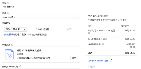 這邊開始進行虛擬機的設定,右邊會即時幫你算一個月的預估花費