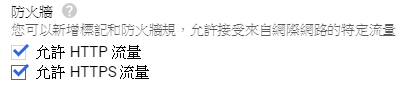 若是要作為網站的這邊可以勾選 允許 HTTP 流量 以開啟port 80 ,或勾選 允許 HTTPS 流量 以開啟port 443