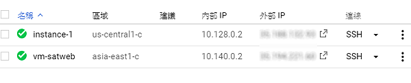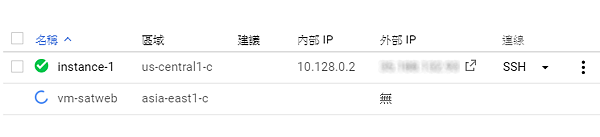 當看到前面出現綠色的勾表示執行個體(vm instance)已經在執行了