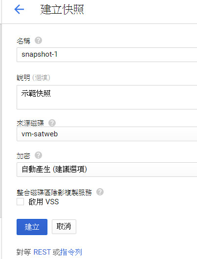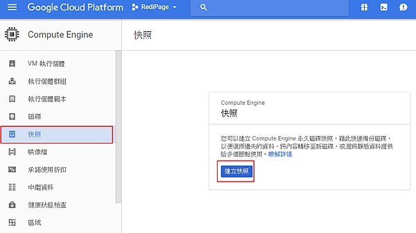 Google提供建立Compute Engine 永久磁碟快照功能。