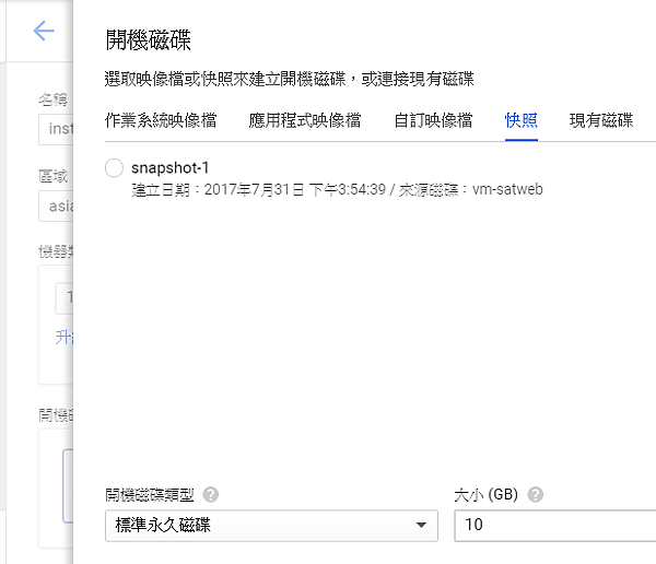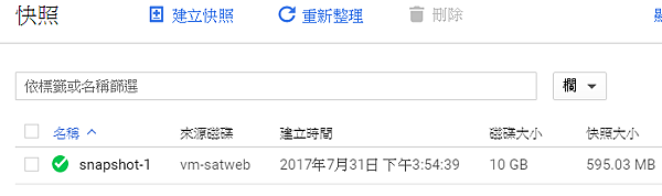 **要注意的是,若剛建立完馬上來看,在同一區不會有問題,但不同區可能會有一段時間找不到快照,不過一段時間後所有區域都能使用該快照