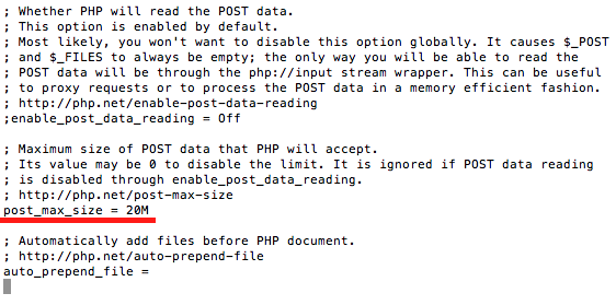 一樣找到post_max_size調整想要的大小,這邊同樣調成20M