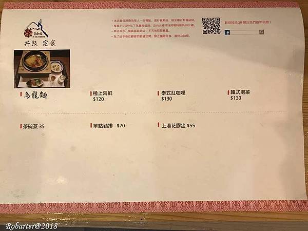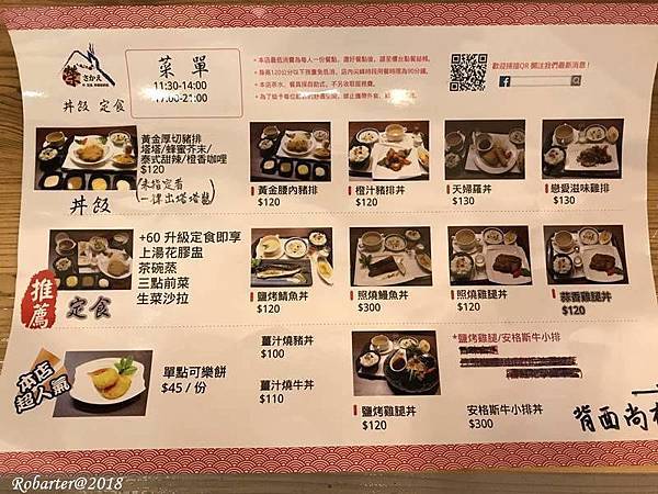 以下是2018/06/09拍攝的菜單,餐點內容包含丼飯、定食、烏龍麵等