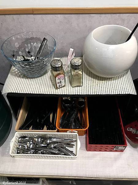 店家不收服務費,所以餐具採自助式的,在一旁有熱的麥茶以及味噌湯