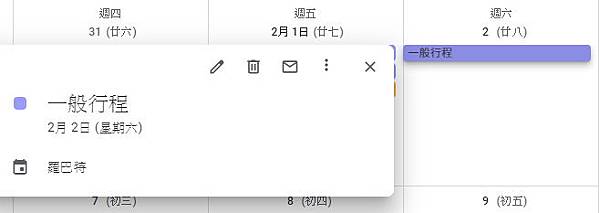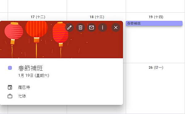 回到主題,上個月在設定補班提醒的時候似乎還沒出現,今天再次檢視時發現這個行程多了背景了